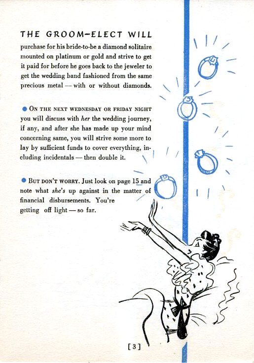 My, how times have changed! Today we would be surprised to receive a valentine or a how-to guide for marriage from our local retail store, but that was just what Hickeys Men’s Department Store used to do. In the 1950s Hickey’s, once located on Washington Boulevard at Clifford Street, published a pamphlet entitled Knowledge for Bridegrooms and others. Hickey’s had the know-how and expertise to prepare men for the most nerve-wracking time of their life: their wedding day. This guide for the groom-elect covers each step from the purchase of the engagement ring, to how to properly ask the probate judge teller for a marriage license. It also gently reminds to keep your calm when pronounced man and wife, and not to forget to kiss your bride!