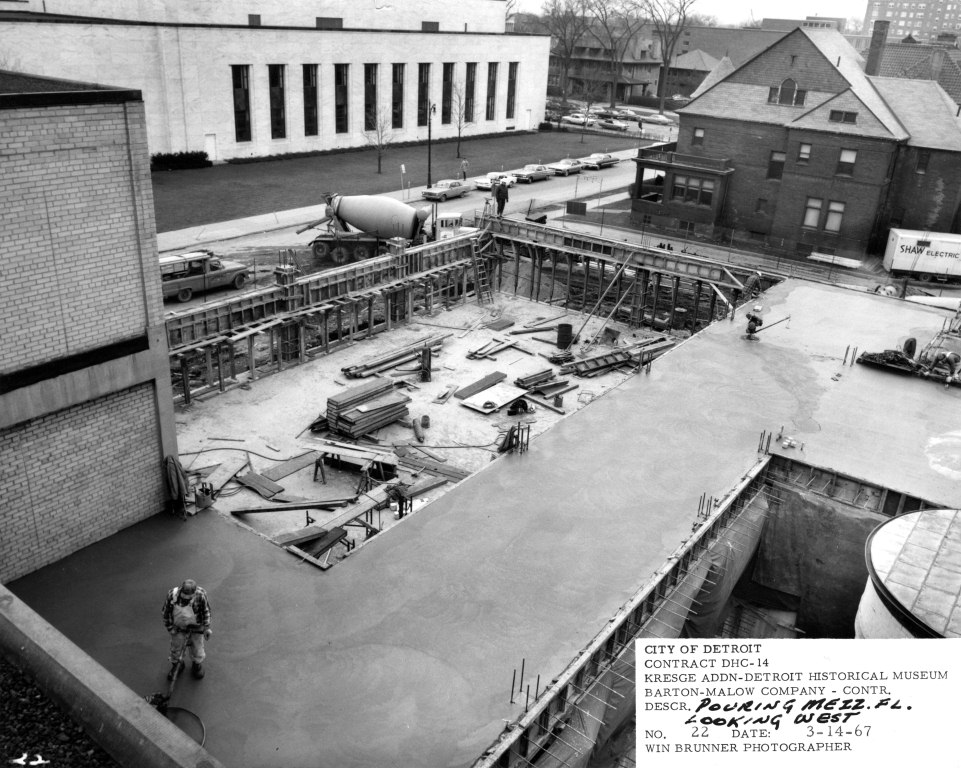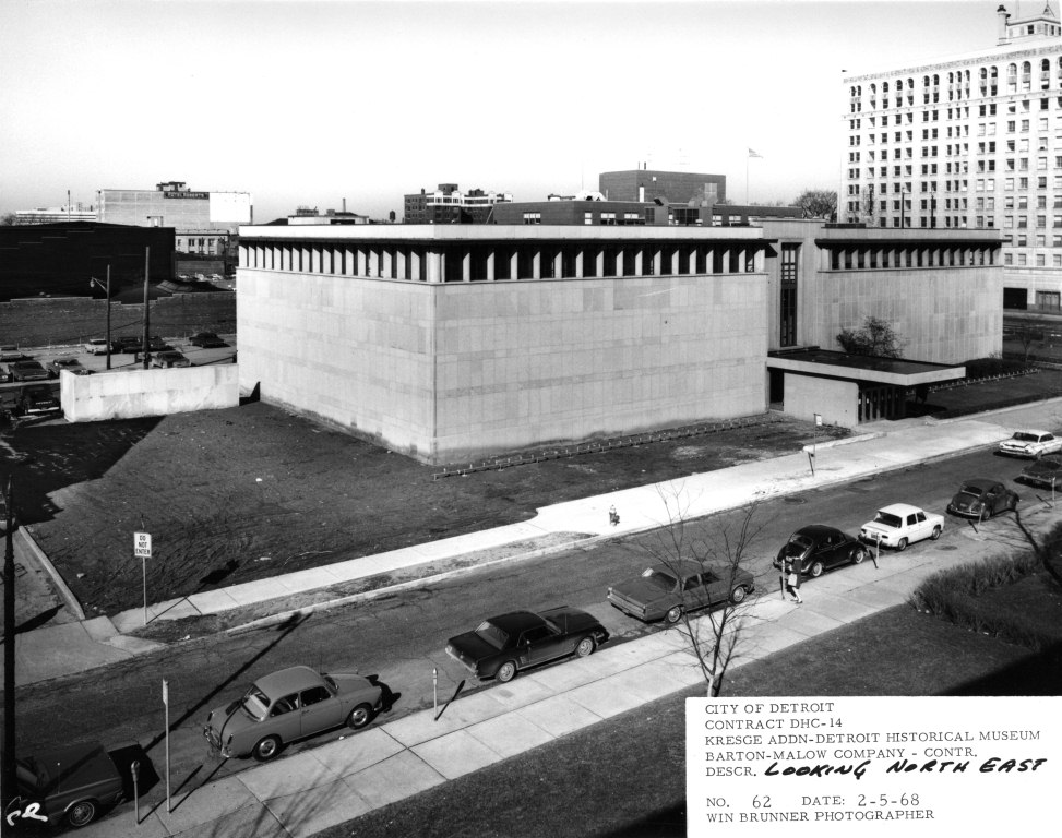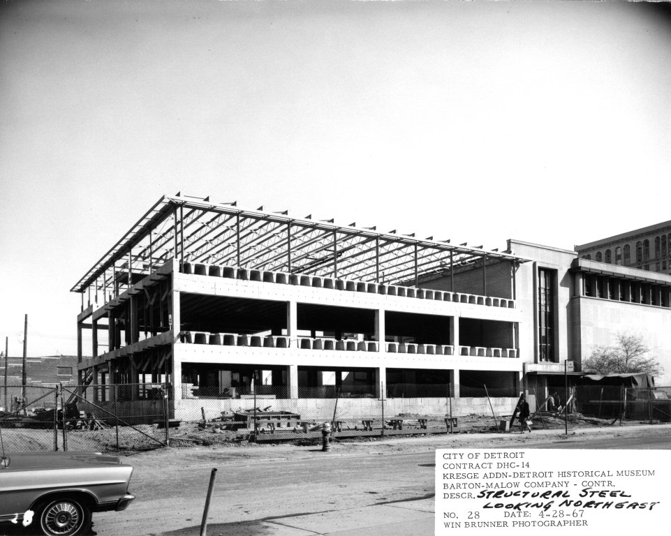 Because of the seamless design, it may not obvious that the museum was built in two phases. The original portion, closer to Woodward, opened in 1951 as the first step towards a grander scheme. So how did it grow to its current size? In 1964, Stanley S. Kresge (son of Sebastian S. Kresge) pledged $500,000 for an addition after Detroit Historical Commission member Gordon Rice made the suggestion to his longtime friend. Originally, the plan was to build three additions down Kirby, from Woodward to Cass Avenue. Mayor Jerome Cavanagh and the City of Detroit matched Kresge’s pledge. The $1 million dollar gift allowed for expansion of the structure.