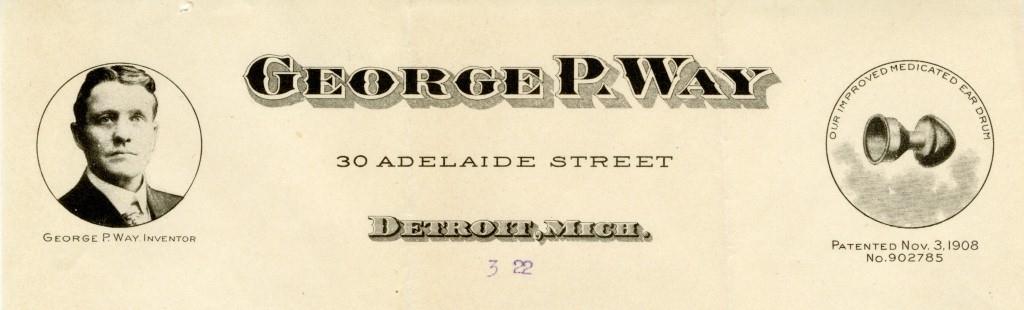 With the opening of the Gallery of Innovation fast approaching, many of Detroit’s lesser known innovators will be spotlighted. However, one name that might not make the cut is George P. Way, of the Artificial Ear Drum Company. Recently we came across a packet mailed in 1922 from Way’s company to a prospective client in California, in which Way attempts to sell both a medicated ear drum as well as a device called the “Blowena,” both purported to cure deafness. The Blowena consisted of a rubber hose through which a patient would blow air from their mouth, past a medicated sponge, into their ear in order to relieve "catarrh, hay fever, cold in the head and influenza, or any irritation of the nose and throat, but particularly for catarrhal deafness." Mr. Way’s inventions are part of a rich history of devices of dubious effectiveness sold as remedies for the deaf and hearing impaired from the 19th and early 20th century.