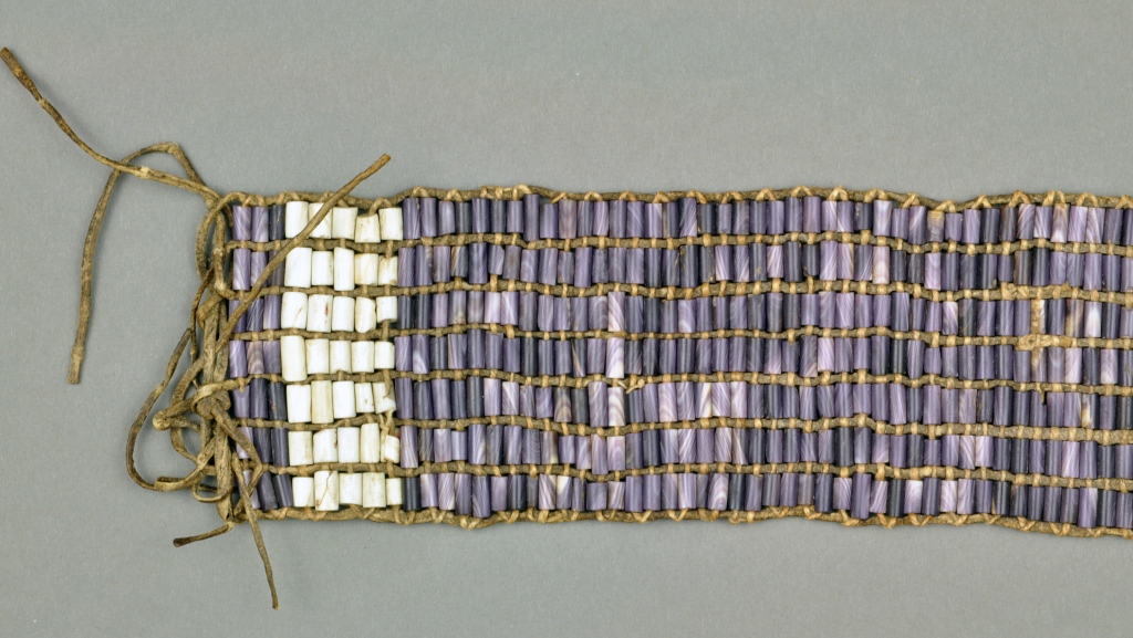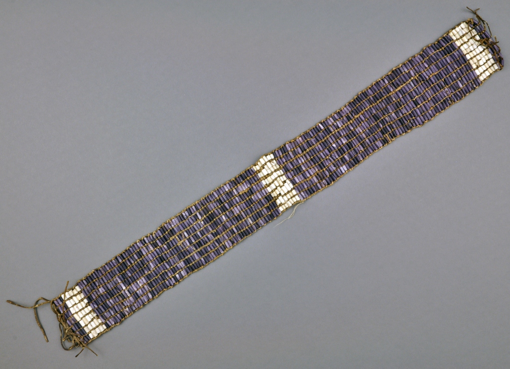 One question we get asked frequently is “what is the oldest artifact in your collection?”, though it isn’t always easy to come up with an answer. The oldest Detroit-related artifact in the collection is a 250 year-old wampum treaty belt. This wampum belt, made of traditional purple and white shell beads, was the Native American method for recording important events--in this case the transfer of a large piece of land. The belt was attached to a handwritten deed for 2,000 Acres at the west end of Lake Superior to British Army Major Robert Rogers from the Chippewa tribe. The deed was signed at Detroit on December 23, 1760 by Chiefs Ogemavas, Nawkusick, Moyeltice, and Kechicushonce. While the treaty did give ownership of the land to the British, the Chippewa retained hunting and fishing rights.
