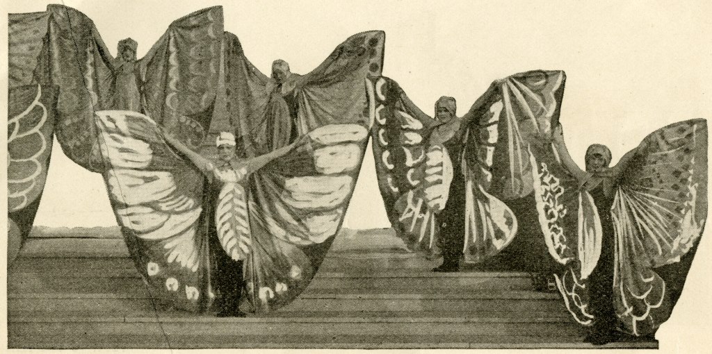 The primary focus of these shows was water ballet, the forerunner to today’s synchronized swimming. A large team of swimmers are listed in the program for the 1923 show, and they are split into acts such as the Disappearing Water Nymphs, the Butterfly Girls, and the Gondola Girls. Their routines were supplemented by wildly diverse performances on the adjacent stages. The 1923 program provides brief and evocative descriptions such as “Jolly Coleman in Dental Dexterity;” “Virginia, Queen of the Air, in a thrilling teeth slide;” high wire artist Choy Ling Foo “in a slide for life, aided by a good head of hair;” “Jack Morgan, the dancing horse;” and “George Hanneford, the world’s greatest riding comedian.” To add to the excitement, Durant Motors cars were given out to three lucky audience members each night. And of course, an event of this magnitude required a spectacular opening and closing. Following an introductory concert, the Awakening was kicked off by a skydiver parachuting into the stadium from an airplane. A fireworks display above the Stadium’s Arabesque backdrop closed out the night.