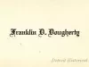 One graduation announcement for the Highland Park High School class of 1928. The bi-fold announcement is printed in black text on white paper and includes a small blue/silver hexagonal symbol with the letters, "HP," on the front. The interior is blank and holds a separate card with the name, "Franklin D. Dougherty," printed in black, Old English style text at the center.