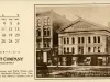 Detroit Trust Company ink blotter, printed with a photo from the 1860s of St. Andrew's Hall on the southwest corner of Woodward Avenue and State Street, as well as a calendar for July 1946. Signs for M.S. Smith and Company, Jewelers; St. Andrew's Bazaar; and Richard de Ran., Job Printing are posted on the building. The caption beside the image reads: