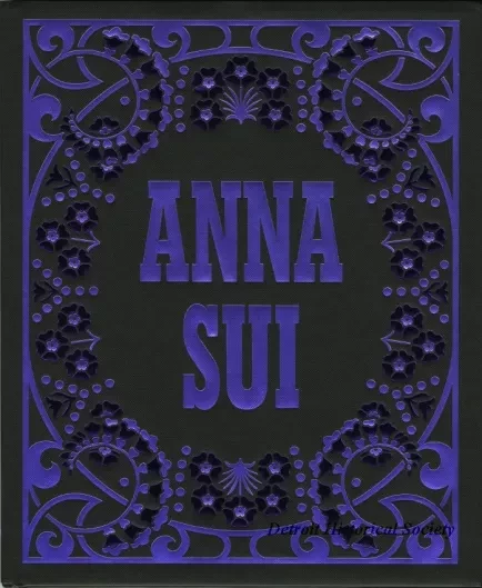One book entitled "Anna Sui." The hardcover book was written by Andrew Bolton and contains 287 pages that are printed in black text on white paper. Many black and white as well as color pictures are included. It has a black dustjacket with embossed purple lettering. The book is about the life of fashion designer, Anna Sui, and summarizes her design work from 1991 to 2009.