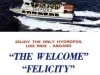 One timetable brochure for Shepler's Mackinac Island Ferry which advertised passenger service between Mackinaw City and Mackinac Island on Lake Huron aboard their three motor vessels, THE WELCOME, FELICITY, and THE HOPE. The one-page brochure is printed in red, blue, and black text on white paper. It gives information about the ferry schedule along with contact information. A color photographic image of the ferry boats is shown on the front of the brochure.