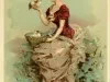 Trade card from the Michigan Stove Company advertising Garland Stoves and Ranges. A color lithograph, credited to G.H. Dunston Lithograph of Buffalo, N.Y., of a woman in a pink dress and red blouse cradling a basket full of kittens and holding a kitten is printed on the recto, An advertising passage stressing the importance of purchasing genuine Garland Stoves and Ranges as opposed to imitators and substitutes is printed on the verso.