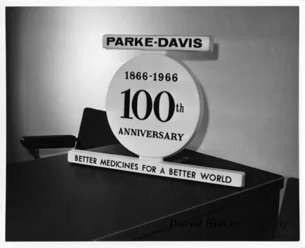 Press kit assembled for the 100th anniversary of Parke, Davis and Company. The kit is contained in a beige two pocket folder with "Parke-Davis 1866-1966, 100th Anniversary, Better Medicines for a Better World," printed on the cover. Within are a letter to the editor from company vice-president Carl Johnson, a small water-transfer decal bearing the logo from the folder's cover, three black and white glossy photographs with additional sheets captioning them--the first of the same logo as a three dimensional desk standee "plaque," a head-and-shoulders portrait of Chairman of the Board and Chief Executive Officer Harry J. Loynd, and portrait of President and Chief Operating Officer Harold W. H. Burrows seated at a desk--as well as five stapled type-written packets. The first is "Centennial Filler Facts," consisting of twelve facts about the company's history spread across three pages, prepared by the Public Relations Department of Young and Rubicam, Incorporated. The same firm also assembled a two page press release entitled, "Sales Meeting, Movie, Brochure Highlight Centennial Year for Parke, Davis & Company," which describes the filming of a promotional film, "Time for Living," as well as an exhibit done in conjunction with the Detroit Historical Society. Two untitled press releases, one four pages long, the other two, briefly detailing the company's history, also come from Young and Rubicam. A thirty page document entitled, "Parke, Davis & Company, 'Better Medicines for a Better World," which gives background on the company and its activities is also included.