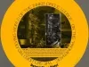 Circular placemat from the Western International Detroit Plaza Hotel's Inner Circle Lounge on the Renaissance Center's promenade. The recto is yellow with a monochromatic photo of the Gerhardt Knodel hanging sculpture Free Fall which was displayed within the hotel's atrium. A cocktail menu with photos and descriptions of eight drinks, including the Dirty Bird, which was served in a bird-shaped mug, is on the verso.