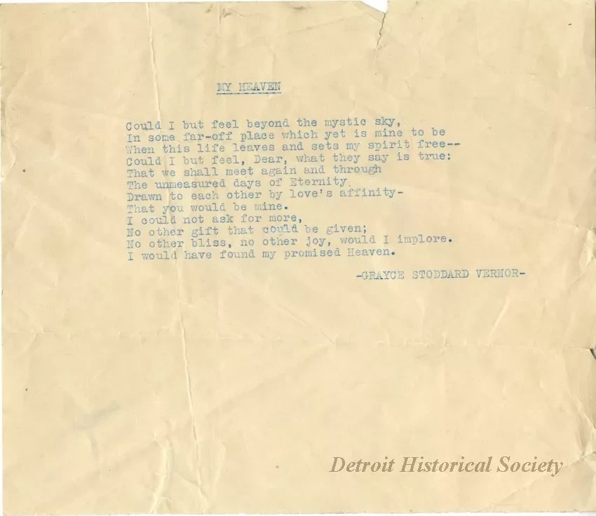 Poem by Grayce Stoddard Vernor, typed on beige paper, incorporating the handwritten alterations made to the version in 2014.002.219.