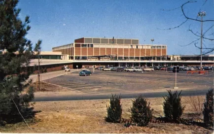 Printed on verso: Northland Center, Detroit, Michigan. "The world's largest shopping center", built by the J. L. Hudson Company and opened in March, 1954. The center section, occupied by the J. L. Hudson Company, is surrounded by beautifully landscaped malls ... including modern statuary ... restful redwood benches, fountains, trees, and flowers. Along the outer rim and in the concourses are some eighty stores, offering the latest and choicest of merchandise uniquely displayed. Tremendous parking areas, adequately marked and lighted, surround the whole project. This fabulous shopping center is located between 8 Mile Road and 9 Mile Road and bounded by Greenfield Road and Northwestern Highway on the northwestern boundary of Detroit.