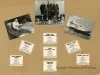 Display board with photographs. Black and white photos across the top of the board show (left to right): 1. Driver, Danny Foster, seated in the cockpit of the hydroplane, Miss Peps V., 2. the owners of Dossin's of Detroit, brothers Walter, Russell, and Roy standing behind a display of racing trophies won by their hydroplane, Miss Peps V., and 3. Miss Peps V being driven by Danny Foster. Beneath the photos, there are seven printed labels that note the various trophies that were won by Danny Foster and Miss Peps V in 1947. A printed label in the lower right corner of the board shows "Copies by Allen Studios, Inc., Detroit."