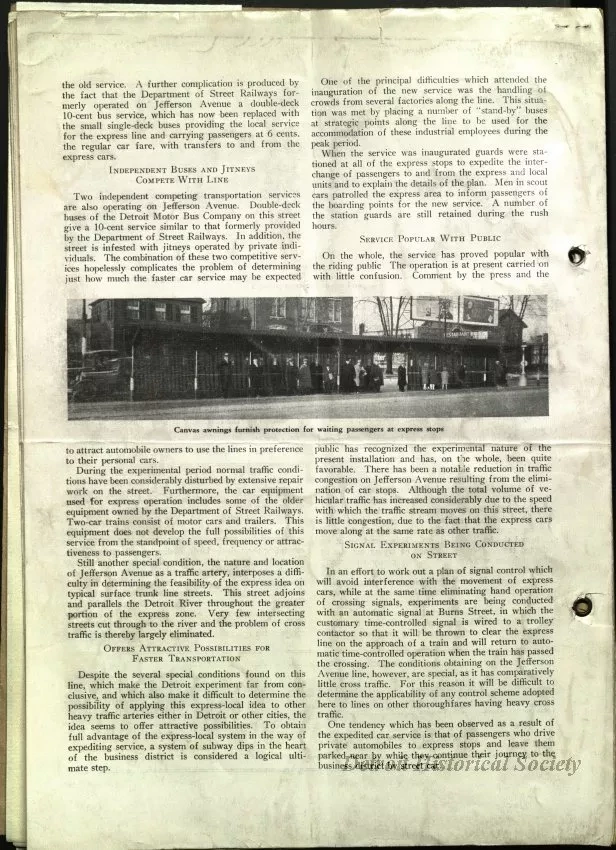 One report entitled "A New System of Surface Rapid Transit." The softcover report has a tan cover and contains 12 typewritten pages that discuss the "Miller-Schorn Rapid Transit System." Included at the back of the report is a reprint of a 4-page article from the "Electric Railway Journal" of January, 1928, which discusses rapid transit in Detroit and gives details and conceptual drawings of the proposed Miller-Schorn plan.
