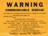 Double-sided sign from the Detroit Board of Health printed on yellow cardstock with a communicable disease warning on the recto, and a notice of a quarantine on the verso. Both sides contain blanks where the nature of the disease can be written.