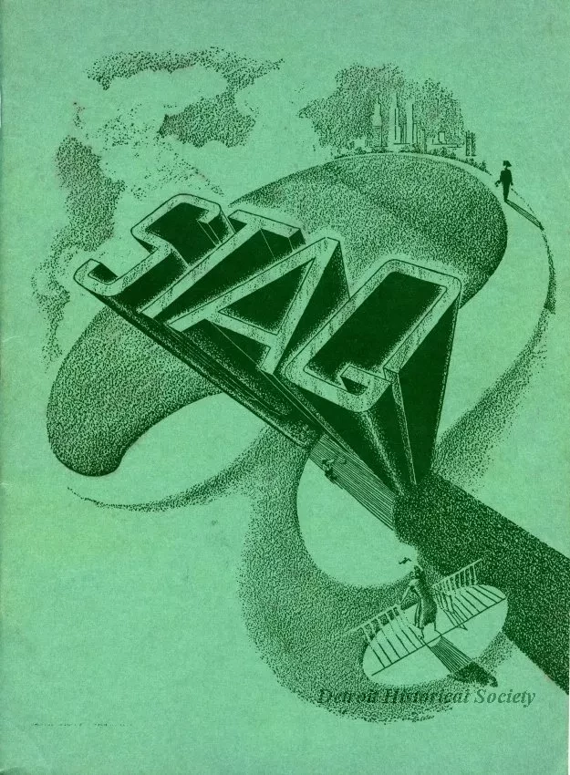 One softcover "Stag" yearbook from Mackenzie High School in Detroit. The cover is printed in black ink on light green paper and shows a futuristic drawing that includes a 3-dimensional image of the title text and a distant city skyline. The yearbook contains 59 pages of faculty and student photographs and names as well as photographs and names of students who were members of various school clubs and teams. Several short stories, poems, and advertisements are also included. The yearbook was prepared by the graduating class of June, 1939.