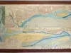 One framed nautical chart entitled "Port Facilities at Detroit, Michigan." The chart is printed in brown ink on white paper with topographical details enhanced in colored inks. It covers the area of the Detroit River from Lake St. Clair to Lake Erie. The chart was prepared by the Board of Engineers for Rivers and Harbors (of the U.S Army Corps of Engineers) at an approximate scale of 1/8" = 200' and is dated June, 1961. It is held in a plain brown wood frame and has a protective glass covering.