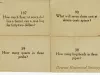 A game entitled, "Grandma's Arithmetical Game." Along with the red and green game title, small black text near the bottom reads " 4929 / MADE IN U.S.A. / MILTON BRADLEY CO., SPRINGFIELD, MASS. U.S.A." The game is meant to aid children in number skills and common knowledge. The game consists of an answer and instruction book and over a hundred printed question cards. The box is green with an illustration of a small child on the cover looking at a blackboard with mathematical equations written on it in chalk. There are handwritten equations on the inside of the lid.
