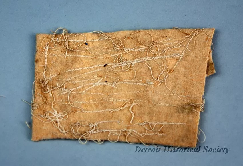 Toy sewing machine made of stamped and cast metal, painted gold color. Base is marked "The Tabitha, Patent applied for." In original blue cardboard box with instruction booklet. Label on box lid reads, "The Tabitha Sewing Machine, Manufacturers Daniel Judson & Son Ld., London & New York."