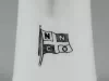 One small cream pitcher (single serving size) from the dining room of the passenger steamship, SS City of Collingwood, of the Northern Navigation Company. The cylindrically-shaped pitcher is made of heavyweight white glazed china. It has an open top with a thickened rim, a short spout, straight sides that flare outward slightly to form a wider base with a rounded edge, and a plain curved side handle. A black and white image of the company flag is stamped the side of the pitcher beneath the spout. No manufacturer's name or marks are shown.
