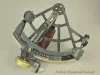 One U.S. Maritime Commission stadimeter (sextant type). The instrument has a varnished wood handle, a brass frame that is painted black, and glass lenses/mirrors. Graduation marks (in feet) are shown in white along the lower arc of the frame. A metal label on the upper part of the radius arm shows "Stadimeter, U.S. Maritime Commission, Ser. No. 2549-1942. Schick, Incorporated, Stamford, Conn., U.S.A." The instrument is contained in a square-shaped box that is made of teak wood. The box has brass hinges, two brass latches, and a brass handle. A metal label above the handle shows "Stadimeter, U.S. Maritime Commission, Mfd. By Schick Incorporated, Stamford, Conn., U.S.A." The number, "2549," is handwritten in black ink on the top of the box. The number, "72.012," is carved in the wood panel on the hinge side of the box. An "Operating Instructions" sheet is glued to the inside top panel of the box.