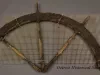 Partial ship's wheel: a portion of the outer rim and three spokes, stabilized on a grid shaped mounting. Recovered from the wreck of the early freighter EBER WARD, which sank in the straits of Mackinac on April 20, 1909, with five lives lost.