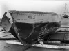 Negative. Black and white negative of lifeboat no. 2 from the wreck of the SS Edmund Fitzgerald. The lifeboat is resting on the deck of the SS Valley Camp museum ship in Sault Ste. Marie, Michigan.