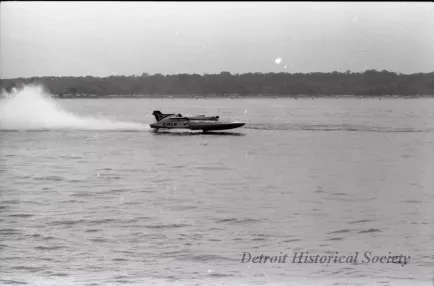 Request ImageBlack and white negative of GALE V, taken during the 1963 Gold Cup Race on the Detroit River. GALE V, driven by Bill Cantrell, finished secon overall.
