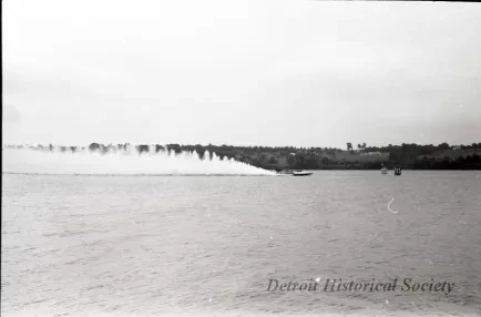 Black and white negative film taken at the 1960 Harmsworth Race, held at Picton, Ontario, of NITROGEN, driven by Norm Evans, one of the three U.S. challengers.