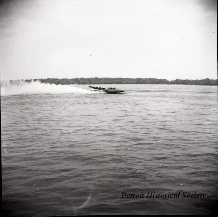 Request ImageBlack and white negative film taken during the 1969 Harmsworth Race of MAVERICK, driven by Bill Stead, the U.S. defender, who lost the race to MISS SUPERTEST III..