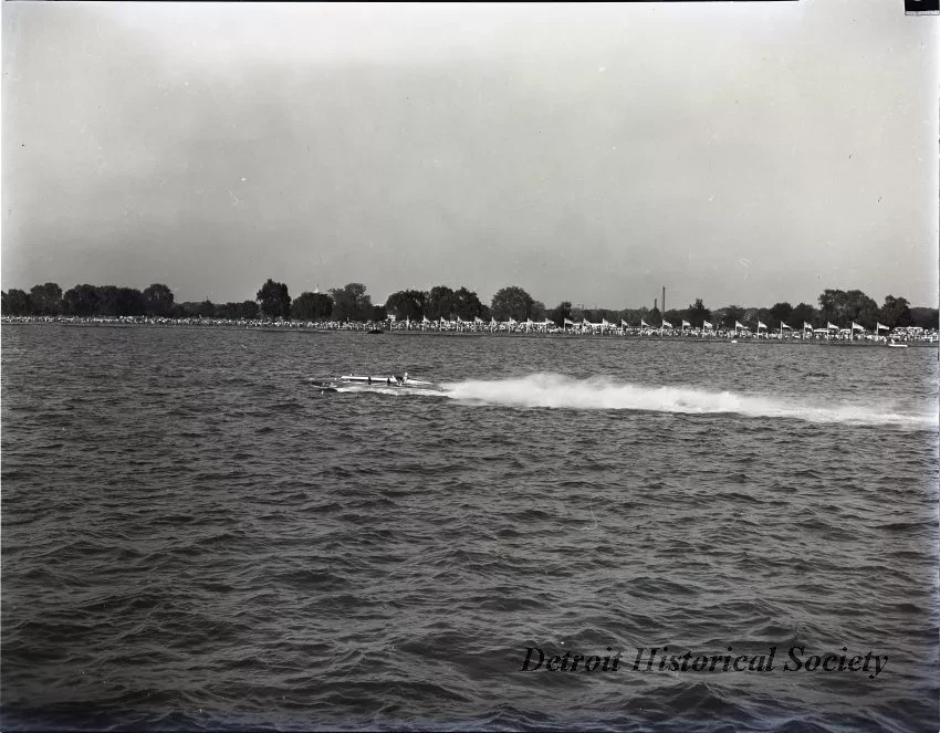 Black and white negative taken at the 1951 President's Cup Race on the Potomac River at Washington, D.C. Pictured is MISS PEPSI, driven by Chuck Thompson, who won the race.