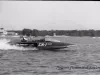 Black and white negative film of MISS SUPERTEST II, driven by Bill Braden, taken during the 1956 Harmsworth Races on the Detroit River. The Detroit Yacht Club can be seen in the background.