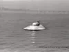Black and white negative film taken at the 1963 Gold Cup Race, held July 7th on the Detroit River, of MISS THRIFTWAY, driven by Bill Muncey, returning to the dock. The boat finished sixth overall in the race. The Belle Isle Bridge can be seen in the background.