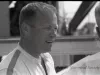 Black and white negative film taken at the 1963 Gold Cup Race, held July 7th on the Detroit River, of driver Bill Muncey in the pits.