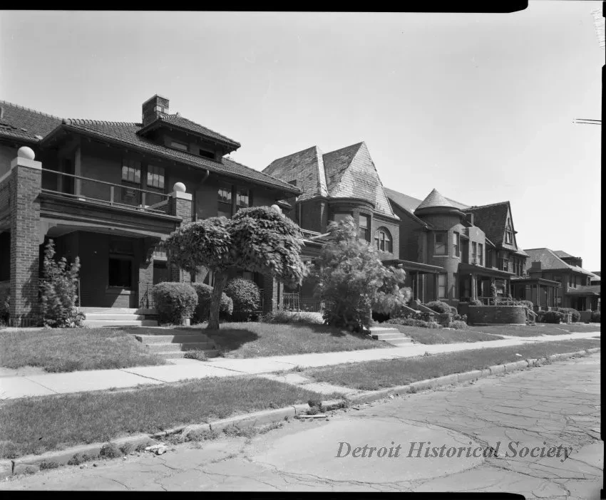 Black and white film negative of houses on the north side of Putnam Street, between 2nd and 3rd Avenues.