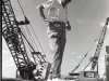 Black and white negative taken during the 1965 Spirit of Detroit Race on the Detroit River of owner Ole Bardahl standing on the deck of his boat, MISS BARDAHL in the pits.