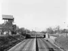 Black and white film negative depicting the Davison Freeway in Highland Park, looking west from the John R Street Bridge.