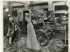 Black and white photographic print of a display at Wanamaker's department store in Philadelphia. The display features several mannequins and a coach with a nearby sign reading "The Family Coach used by Lafayette on the occasion of his Public Reception in the City of Albany _ 1825."