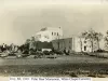 Black & white photographic print depicting a group of people at the WWI Polar Bear Memorial by Leon Hermont at White Chapel Cemetery in Troy. In the background is the Temple of Memories Mausoleum under construction.