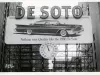 Black and white photographic print depicting a Walker & Co. billboard between the Grand Park Centre and Fyfe Building displaying an advertisement for DeSoto that reads, "Nothing says Quality like the 1960 DeSoto" and incorporating a thermometer. In the background is the Palms Building.