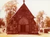 Request ImageColor photograph of the front of exterior of the Scripps family mausoleum in Woodmere Cemetery.