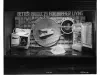 Print. (2 Copies.) Black and white photographic print of a window display featuring large kitchen appliances on exposition at The J.L. Hudson Company Department Store. Signage atop the rear of the display reads, "Better Products For Happier Living." A fabrication of the planet Saturn features a Crosley Stove on the left side of the ring, and a model home in the middle of the planet; a refrigerator is also visible on the right side of the ring. Signage around the planet reads, "Your Homemaking World." Large signage neighboring the refrigerator reads, "Trends, Crosley." Both the refrigerator and stove are open and filled with product to demonstrate their capacity. Signage in the right-central foreground reads, "Your Homemaking World Past Present Trends, Hudson's 17th Housewares Exposition, January 16 through 28; Start touring anywhere, and see all the exciting exhibits on the 'Block By.', 10th Floor." The date, photographic sequence number, company name, and photographer's name are printed on the bottom of the recto, "1-19-50; 23974-3x; The J.L. Hudson Company; Photography by Davis B. Hillmer."