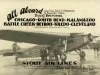Black and white photograph mounted on board. Advertisement for Stout Air Lines. Text at top reads "All Aboard Luxurious Ford Tri-Motored 12 Passenger Plane Flying Between Chicago-South Ben-Kalamazoo Battle Creek-Detroit-Toledo-Cleveland Convenient Departures Daily." Text at bottom reads "Stout Air Lines Oldest Passenger Airline Operators In United States Division of United Aircraft & Transport Corporation." The background is an image showing a front and right side view of a Stout Air Lines Ford Tri-Motor airplane at Ford Airport. Several people are boarding the plane, with additional people standing in the background to the right. A portion of the passenger terminal can be seen on the right side of the image.