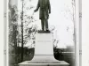 Black and white photo of Alfonso Pelzer's statue of Abraham Lincoln on the ground of the Lincoln Motor Company Plant at Warren Avenue and Livernois Avenue. That statue stands on a stone pedestal with the inscription, "Let Man Be Free." "3-23-30," is handwritten and "165" is stamped on the verso.