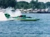 Color photograph of JASPER ENGINES & TRANSMISSIONS, driven by Mike Hanson, taken during the 1995 Gold Cup Race on the Detroit River. The Detroit Yacht Club docks can be seen in the background.