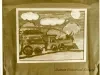 One sepia-toned photograph of student art at Children's House, an art center for children in Detroit. The photograph shows a painting of a steam locomotive and tender on a railroad track. An inscription on the painting says it was done by an eleven year old. A cloth backdrop is visible in the background.