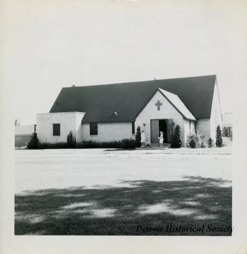 Request ImageBlack & white photo depicting Northwest Trinity Lutheran Church on the southeast corner of St. Martins Avenue and Marlowe Street.
