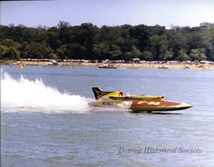 Request ImageColor photograph of GALE V at speed, with driver Jerry Schoenith at the wheel. The location of the picture is unknown.
