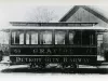 Black and white photo of the side of Detroit City Railway streetcar number 66, assigned to the Gratiot Avenue route. A wooden building and a picket fence are in the background. "Detroit City Ry. #66 1863," is stamped on the verso.