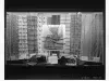 Print. Black and white photographic print of a window display featuring fabrics from Guatemala, available at The J.L. Hudson Company Department Store. The heavily patterned fabrics are draped throughout the window and each features a descriptive sign at the bottom which read from left to right, "Kum Stripe, __an Blue, Magnificent Feather Capes Noble Mayan Chieftans Arrived to Mayan Battlefield Site; Todas Lamas, Fuego Red, Legend - From a Primitive Woven Fabric of Coban; Chichi-Chacs, Tinta-Black, Legend - The Gods of ____ Rains ___ ; Pixcoy; Quice-Mam, Fuego - Volcano, Legend - Design Drawing Combined ____ ____ of the ____ Mam and Quice; Tzut Stripe, Atitlan Blue; Chinche St___; Hue-Hue Plaid, Adobe, Legend - A Plaid Found in the Highest Part of the Primitive Highlands, Orignial from Huehuetenango Market; and Patito y Nino, Agua Green, Legend - Little Duch and Little Child Desig Agua, the Famous Volcano Near Anti which by Eruption of Torrentos of Water Nearly Destroyed the Capital in 15___." Ribbons from the various bolts of fabrics lead to a map of Guatemala noting the region of origin. Signage in the central foreground reads, "Guatemalan Glamour, In Colorful Fabrics for Modern Settings, Fabric Shops, Eighth Floor, Grand River." The date, photographic sequence number, and photographer's name are printed on the bottom of the recto, "3-31-41; 18417-3x; Davis B. Hillmer."