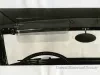 Request ImageBlack and white photographic print taken inside depicting the top of a steering wheel, sun visor, and rearview mirror of a Packard automobile.