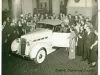 Black and white prints and negative. A large group in evening dress gathers around to examine a white convertible Packard in the lobby of the Edgewater Beach Hotel, in front of a large four-sided fireplace during the 14th Motor Salon on February 21, 1937. Six Packards were exhibited by the Hon, Smithson, and Raywond, a north side Packard dealership from Chicago.